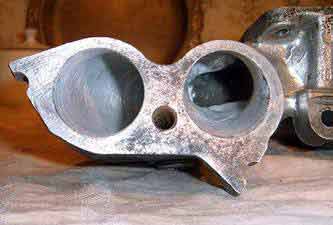 Со стороны коллектора в ней можно,как уже говорилось,сделать диаметр немного больше.Протачиваем до направляющех втулок(их лучше выпрессовывать,что бы не повредить),потом начинаем обрабатывать со стороны камер сгорания,осторожнее с сёдлами клапанов.