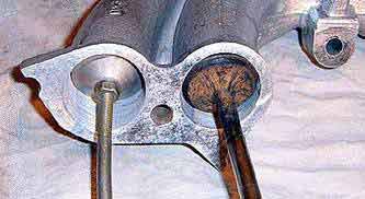 Теперь берём трубку(стержень)с прорезью на конце,в прорезь вставляем наждачку и обматываем вокруг стержня,и начинаем шлифовку каналов ГБЦ. Пришла очередь впускного и выпускного коллекторов,с ними поступаем аналогично ГБЦ.